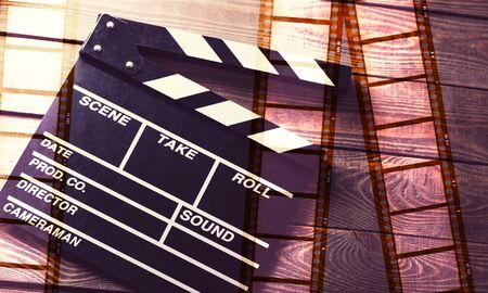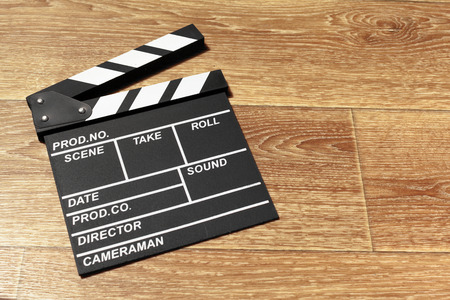 Movie slate film on wooden table