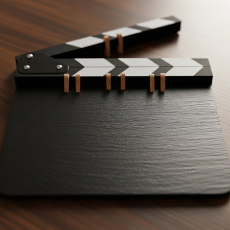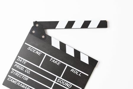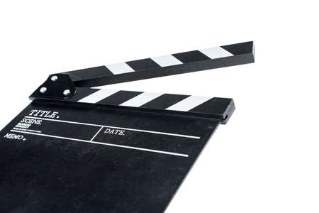 A classic film clapperboard featuring distinct white stripes on a clean background, symbolizing creativity and the filmmaking process in cinema.