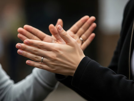 Applause from audience hands clapping formal attire celebration appreciation event atmosphere close up blurred background positive energy engagement