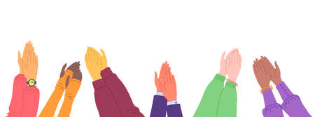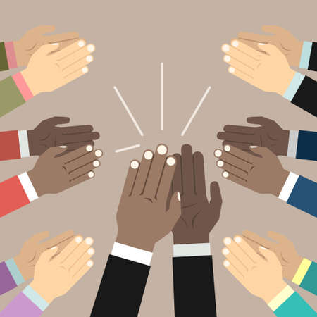Clap of hand. Applause of people. Applaud and congratulations of success business. Great ovation from audience. Cartoon hands with claps. Sign of bravo, happy, appreciation, applaus. Vector.