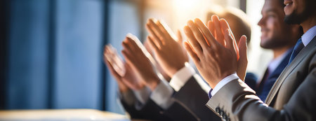 Hands of business professionals in formal suits clapping enthusiastically in appreciation and approval during a formal event or conference such as an awards ceremony presentation