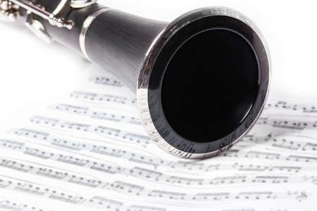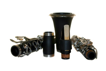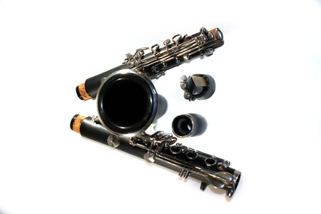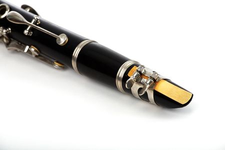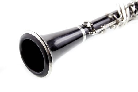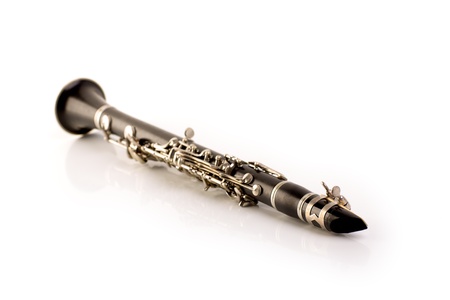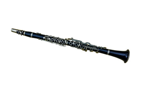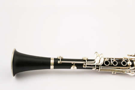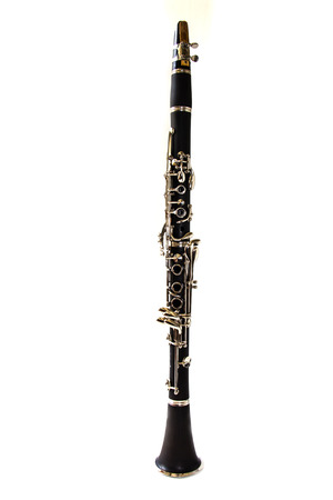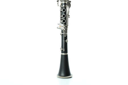 A complete clarinet isolated against a high key white background in the horizontal format.