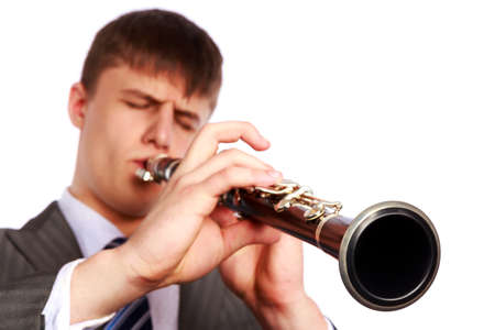 Close-up Of Clarinet Isolated On White Background.Close-Up Of Clarinet On Table.Close up of a clarinet music instrument.