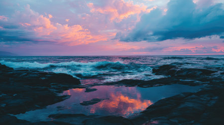 Capturing the Magic Smartphone Photography of a Vibrant, Colorful Sunset over Tranquil Ocean Waves