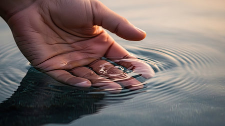 crystal ball in hand with sunset on the background, beautiful photo digital picture