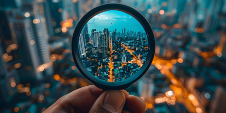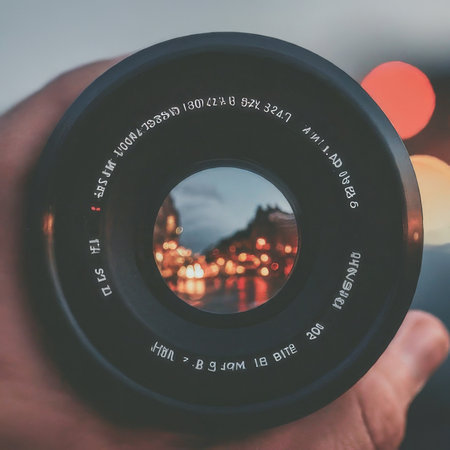 Vibrant cityscape reflections with nikon d850 using high res lens for enhanced urban lights