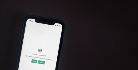 Screen with ChatGPT chat with AI or artificial intelligence. Man search for information using artificial intelligence chatbot developed by OpenAI. Kyiv, Ukraine - February 18, 2023