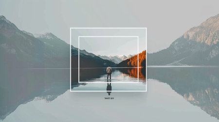 Serene mountain reflection on a calm lake with a cinematic texture in a tranquil landscape
