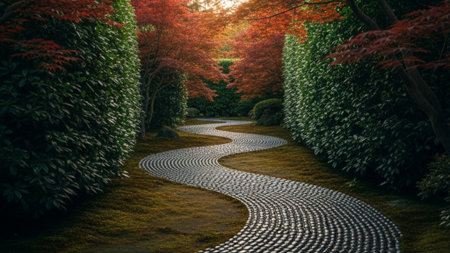 stepping stones marking a path in a zen garden, created with generative ai