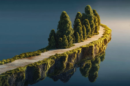 AI Generated. Tranquil Stone Pathway Over Serene Water