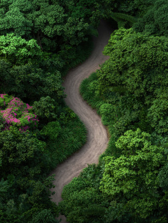 Winding path through lush green forest