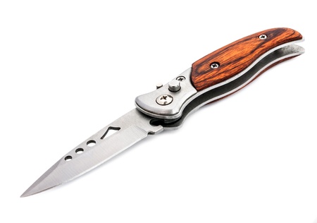 Knife for city carrying. Knife with a hole in the blade. Horizontal frame..