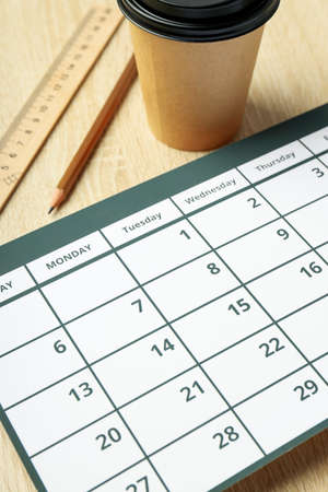 close up of calendar on the table, planning for business meeting or travel planning concept