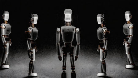 Detailed view of a humanoid robot showing its internal components and smooth exterior in a dramatic lighting setup.