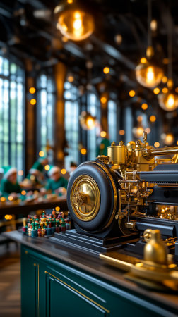 This image captures a vintage phonograph machine, highlighting its intricate mechanics within a historical audio studio, representing a timeless blend of technology and craftsmanship.