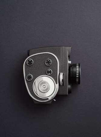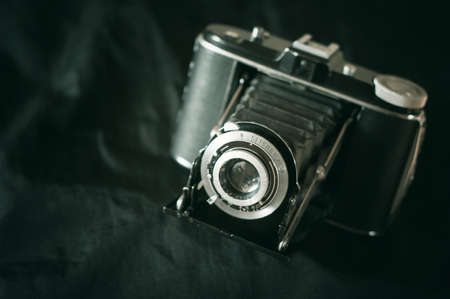 Old retro vintage camera photography dark background. Obsolete nostalgia style.