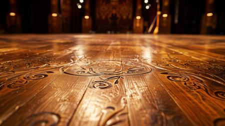 A detailed shot of the stage floor featuring polished wood and intricate designs adding to the overall aesthetic of the space