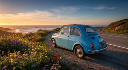 A close-up shot of a vintage car's interior, featuring a map, compass, and other road trip essentials, ready to embark on an adventure.