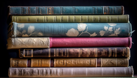 stack of Old books on black surface