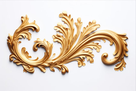 Gilded Elegance: A Golden Baroque Ornament Shines Against a White Backdrop
