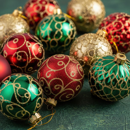 A beautiful arrangement of vintage ornaments showcasing intricate designs and vibrant colors, ideal for enhancing holiday decorations and creating a festive atmosphere.