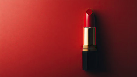 A lipstick in a classic red shade with a clean, elegant background providing ample room for text or branding.
