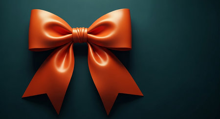 A bright orange satin bow with smooth curves is set against a dark teal background.