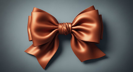 A shiny copper satin bow with a tied knot and smooth fabric texture on a dark gray background.