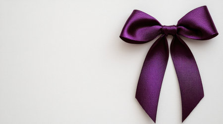 A beautiful purple satin bow placed on a soft neutral background. This elegant accessory is ideal for enhancing gifts or adding a stylish touch to decorations.