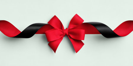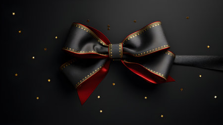 Contrasting red bow stands out against the black background Elegant and festive design Perfect for gift wrapping or decorating any occasion