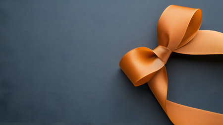 A closeup shot highlights a lustrous bronze ribbon tied into a sophisticated bow against a dark, textured background. The rich color and texture evoke a sense of luxury and warmth.