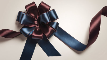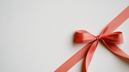 A beautifully tied red bow with flowing ribbons gracefully drapes over a soft, neutral background, creating a sense of elegance, simplicity, and festive charm.