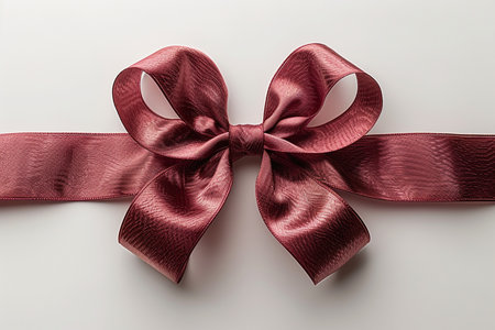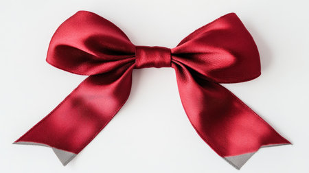 A beautifully tied burgundy satin ribbon bow, perfect for gift wrapping and elegant decorative accents. Isolated on a clean white background.