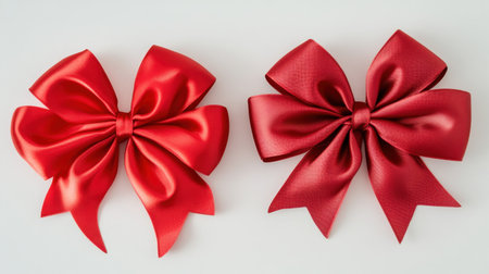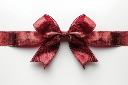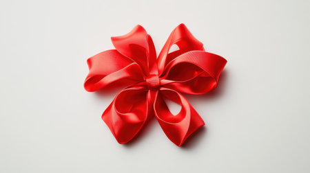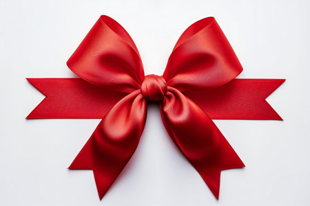 A vivid red bow positioned against a pure white background, symbolizing joy and elegance. Ideal for festive designs, holiday themes, packaging concepts, and creative visuals that need a