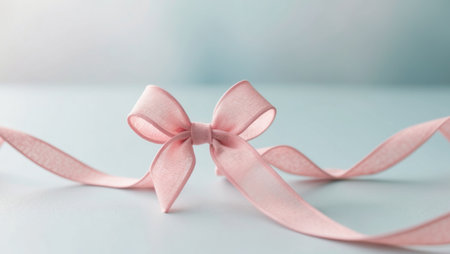 Delicate pink satin bow featured on a smooth pink background, perfect for fashion, gift wrapping, and decoration. Ideal for romantic themes and celebrations.