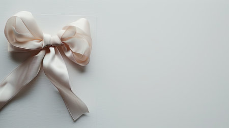 a note card adorned with a delicate ribbon bow, set against a pristine white background for a minimalist yet elegant composition