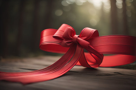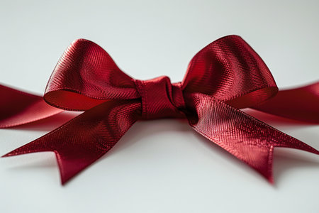 A beautifully tied deep red silk ribbon bow with a subtle shimmer, perfect for gift wrapping and elegant decorations.