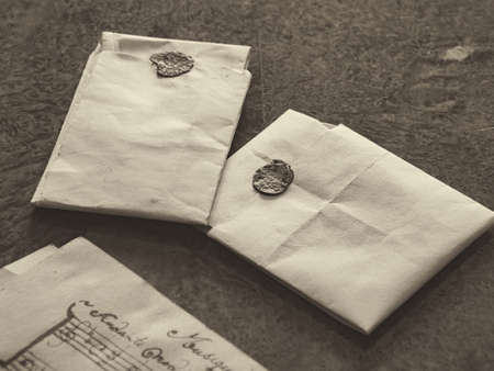 Two letters on old parchment with abrown wax seal and a sheet of notes.