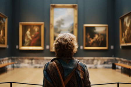 Tourist enjoying masterpieces from the renaissance period in a museum, appreciating culture and history