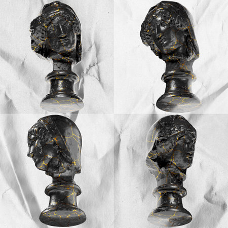 the Mourning Penelope A captivating black marble statue with golden accents for artistic projects