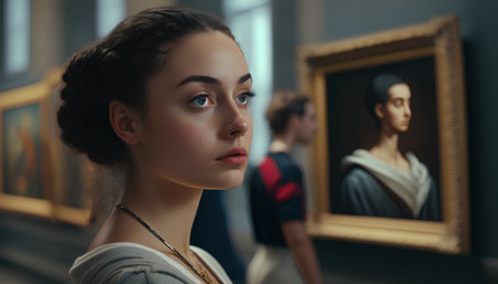 Tourist enjoying masterpieces from the renaissance period in a museum, appreciating culture and history