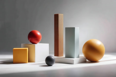 A minimalist composition featuring various geometric shapes in a clean, modern arrangement.