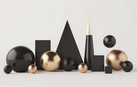 Abstract Black Gold Geometric Shapes 3D Render Modern Minimalist Design Background Art Cube Cone