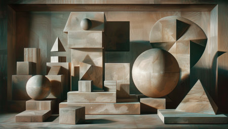 This image showcases an artistic collection of geometric shapes and textures arranged in a minimalist style, ideal for various design or art projects.