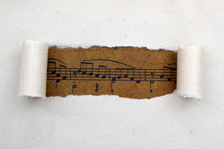 Develop a 4k realistic shot of crumpled, torn sheet music, capturing the essence of a moment frozen in time, emphasizing its texture --chaos 30 --ar 16:9 --v 6.1 Job ID: add61fc3-1be9-4cd7-b826-98d880830b66