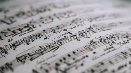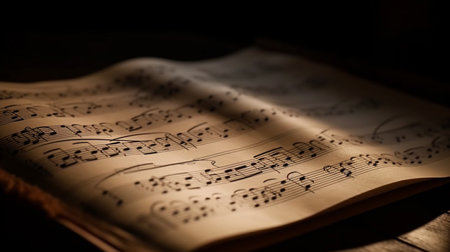 Explore the elegance of sheet music: stunning imagery capturing harmony and grace Detailed close-ups reveal notes, staves, and clefs, perfect for musicians, designers, or anyone appreciating musical art Enhance your creative projects with our extensive collection of timeless sheet music visuals AI Generative