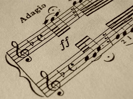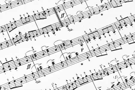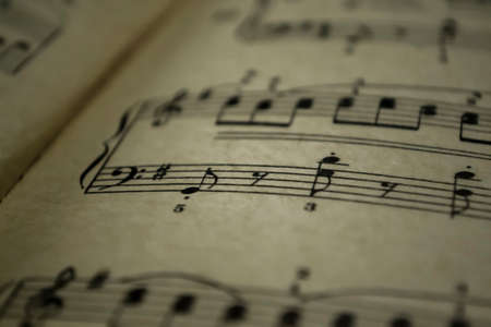 Music piano sheet closeup shot, grungy post processing