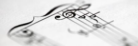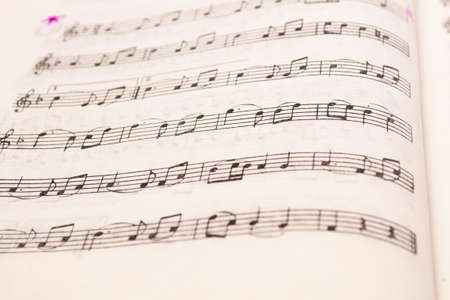 Musical notes on the sheet of paper close-up. Selective focus.