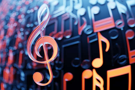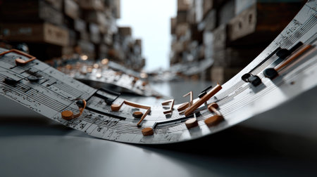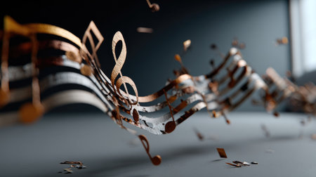 An artistic depiction of musical notes in motion, symbolizing the essence of creativity and rhythm in a visually captivating composition.