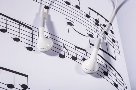 sheet music and earphones